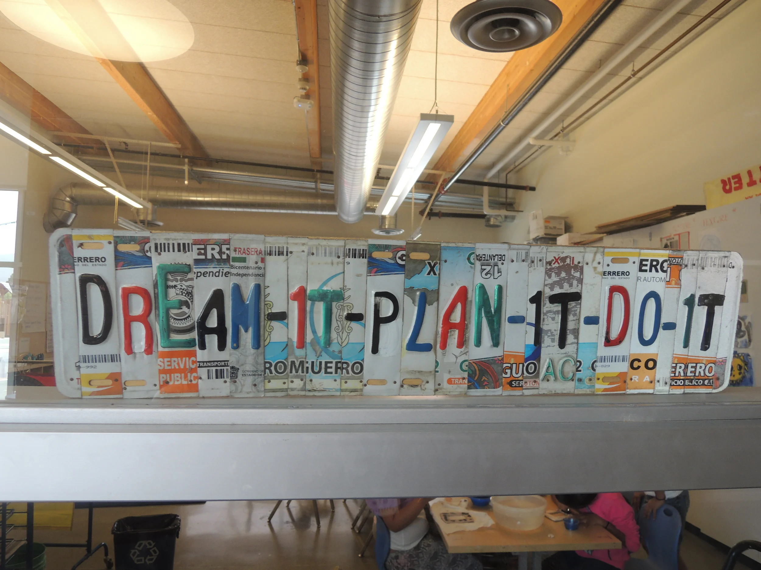 アートルームに飾ってあった、ナンバープレートをつなぎ合わせたオブジェ